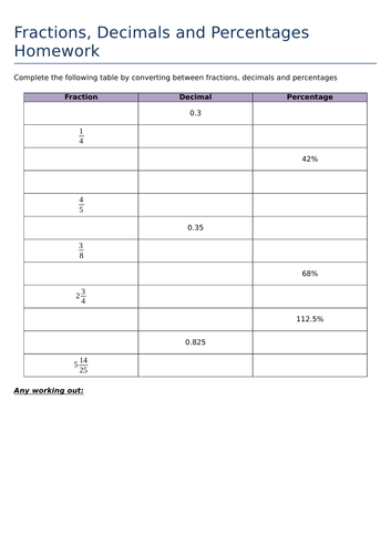 Fdp Worksheet Tes - Fractions Decimals Percentages Table Worksheet Teaching Resources / It would be good to have a description of the resource.
