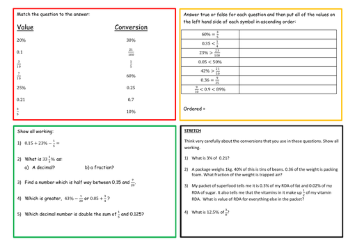 Editor's note with answer sheet and curriculum mapping The templates are considered an ongoing fdp demonstration. An nqt, so all feedback welcomed! The corbettmaths practice questions on ordering fractions, decimals and percentages Use bus stop method to turn the fraction into a decimal, then multiply by 100 to turn that into a percentage